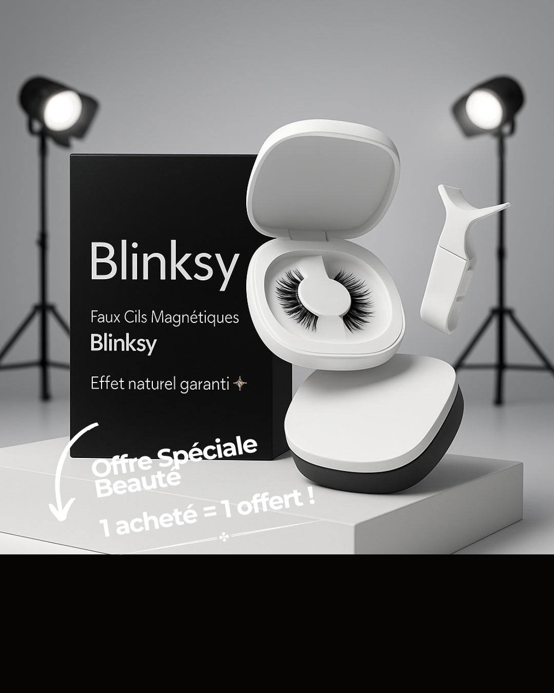 Obtenez des cils parfaits en quelques secondes avec Blinksy. Application ultra-rapide de 3 secondes et retrait en 2 secondes, sans colle ni désordre. Notre technologie magnétique révolutionnaire ne laisse aucune trace et protège vos cils naturels. Idéal pour celles qui veulent une beauté instantanée et propre avec des résultats longue tenue.